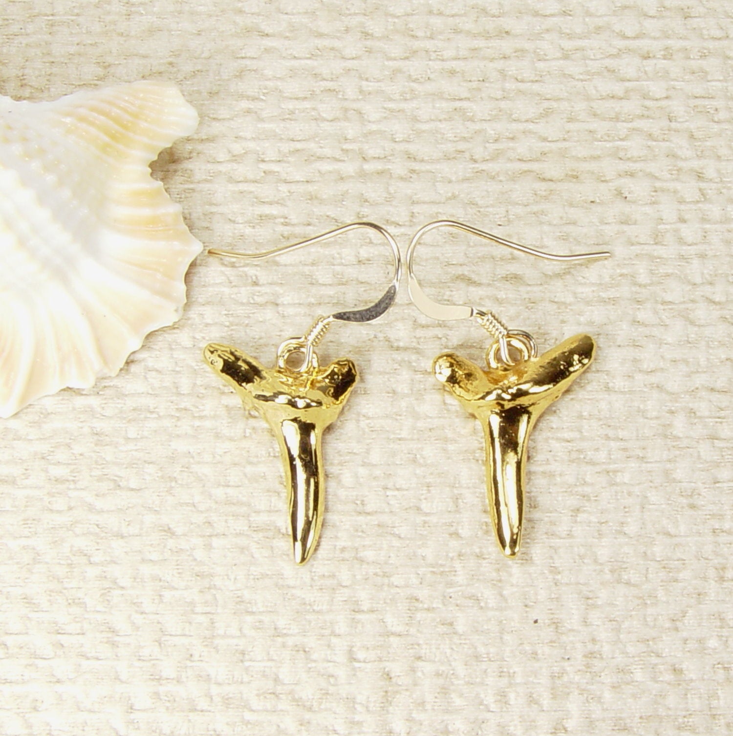 Fossil Shark Tooth Earrings with Electroformed 18kt Gold