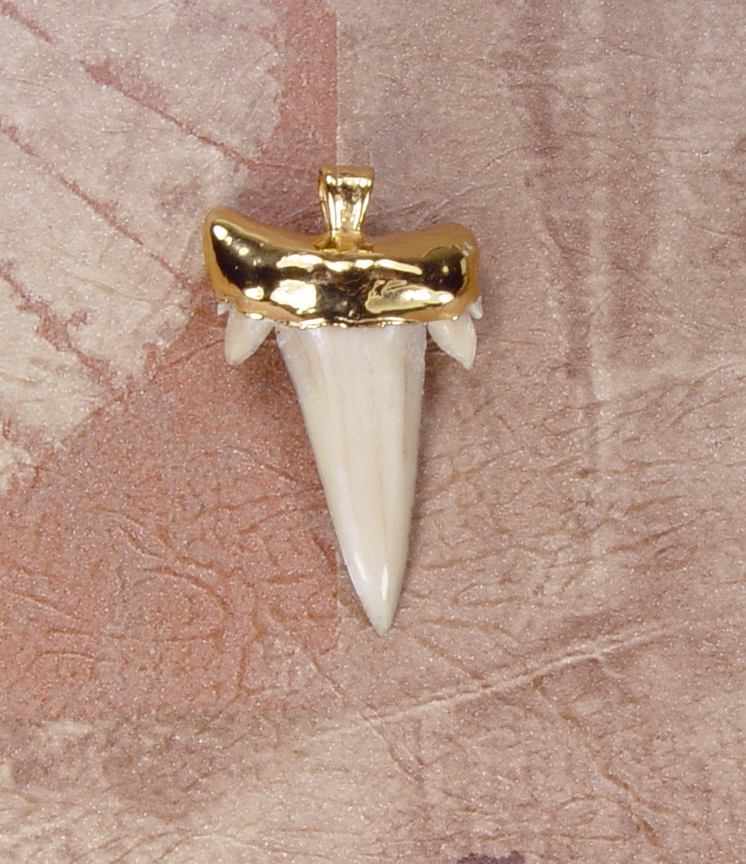 Fossil Mackerel Shark Tooth Pendant with Electroformed 18kt Gold